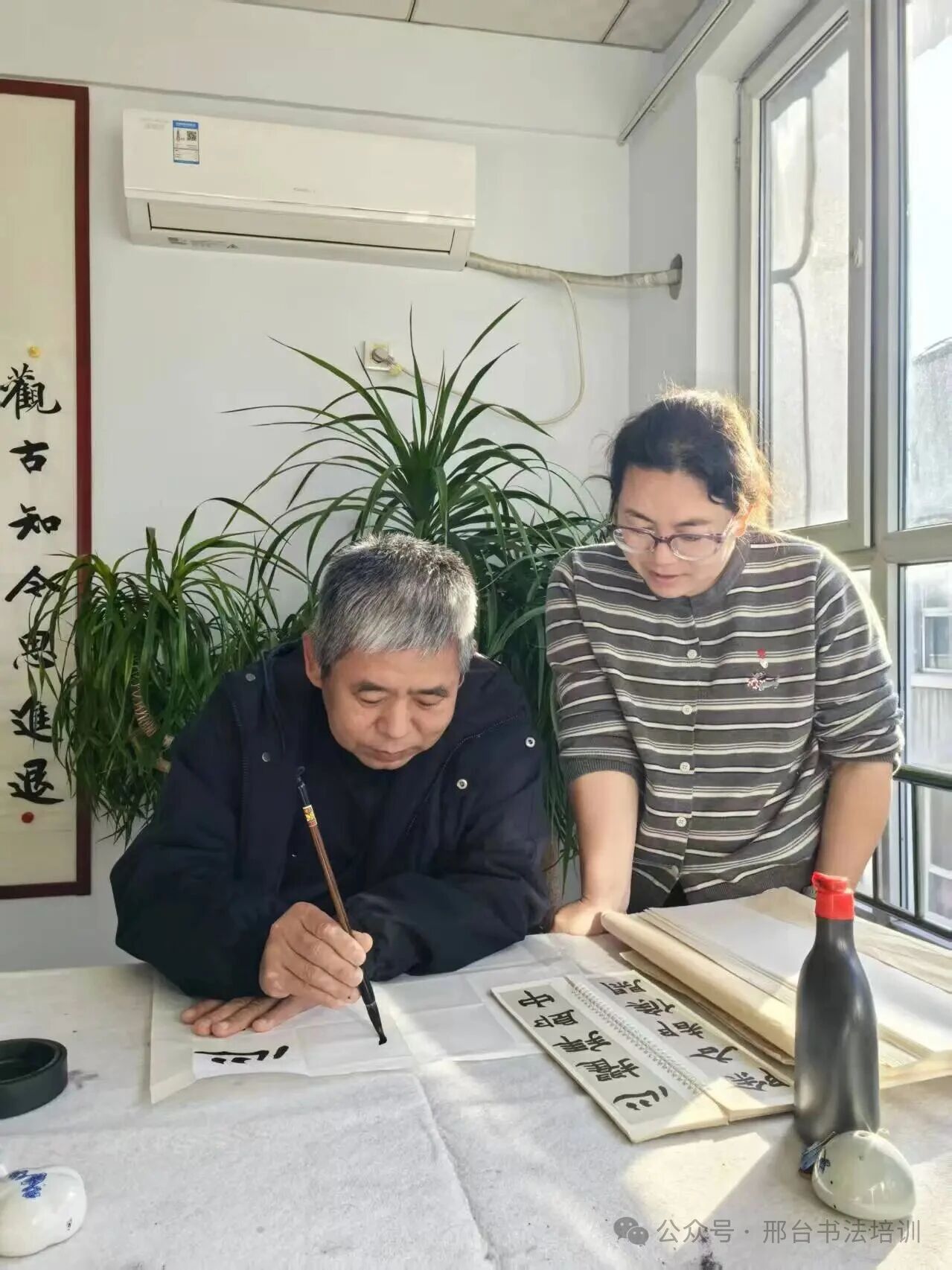 2016年,已是职场第二年的我,以辅导员的身份每日坐班。忙碌间隙总觉时光不该虚度,便再次拾起毛笔,将《曹全碑》的临帖铺满办公桌后隐蔽的墙面,有空便练,笔墨成了闲暇时的慰藉。可这份刚刚升温的缘分,终究被生活的琐碎打断——2017年10月老二出生,毛笔再度被束之高阁。